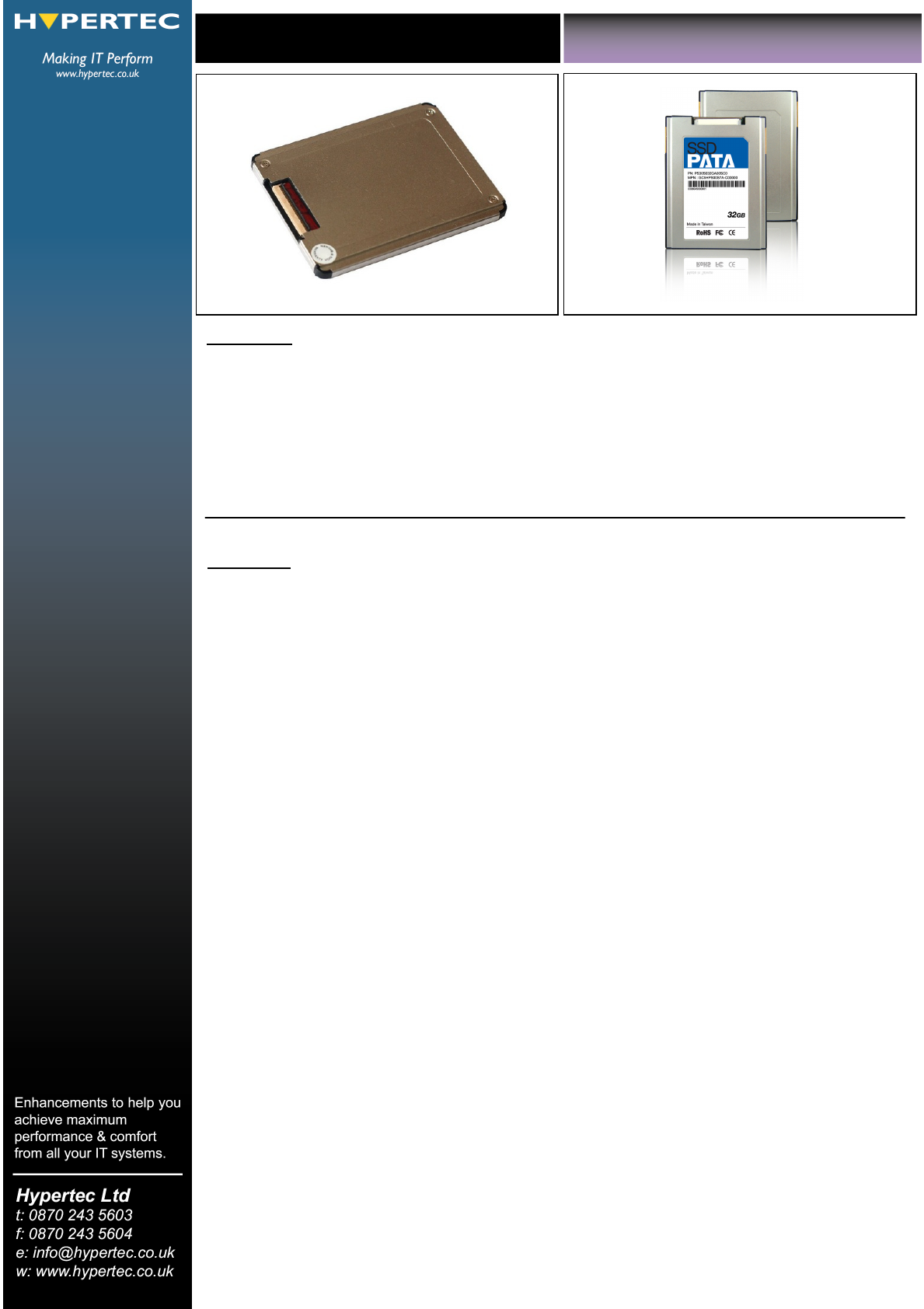 Hypertec’s 1.8” PATA SSD (solid state drive) is a non-volatile, solid state data storage disk. Given